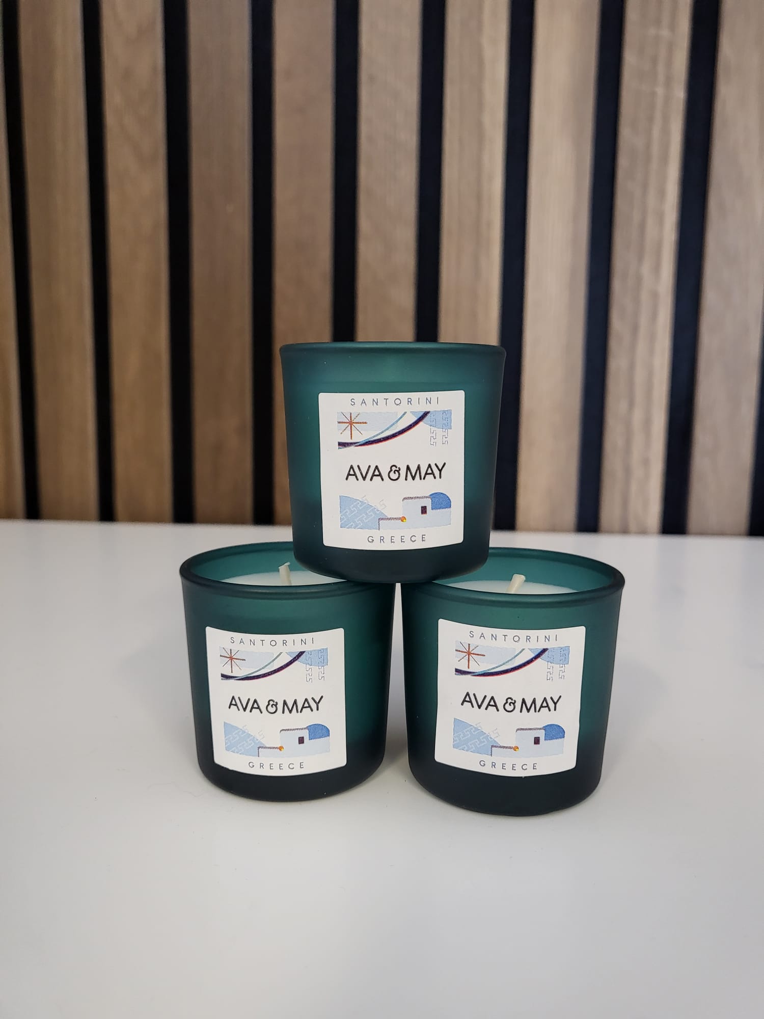 AVA & MAY Duftkerze — Mini Kerze - Brenndauer ca 7 Stunden Santorini - Greece