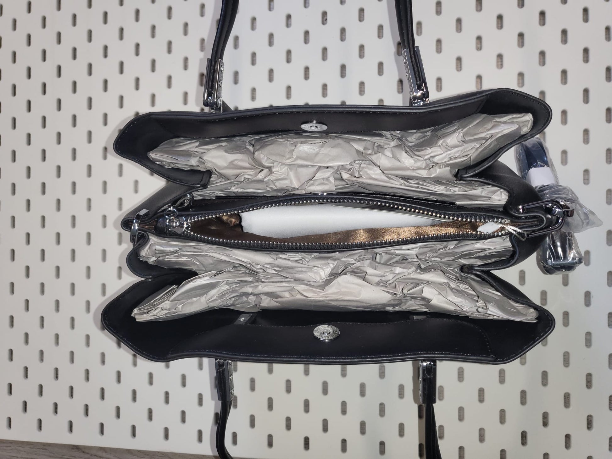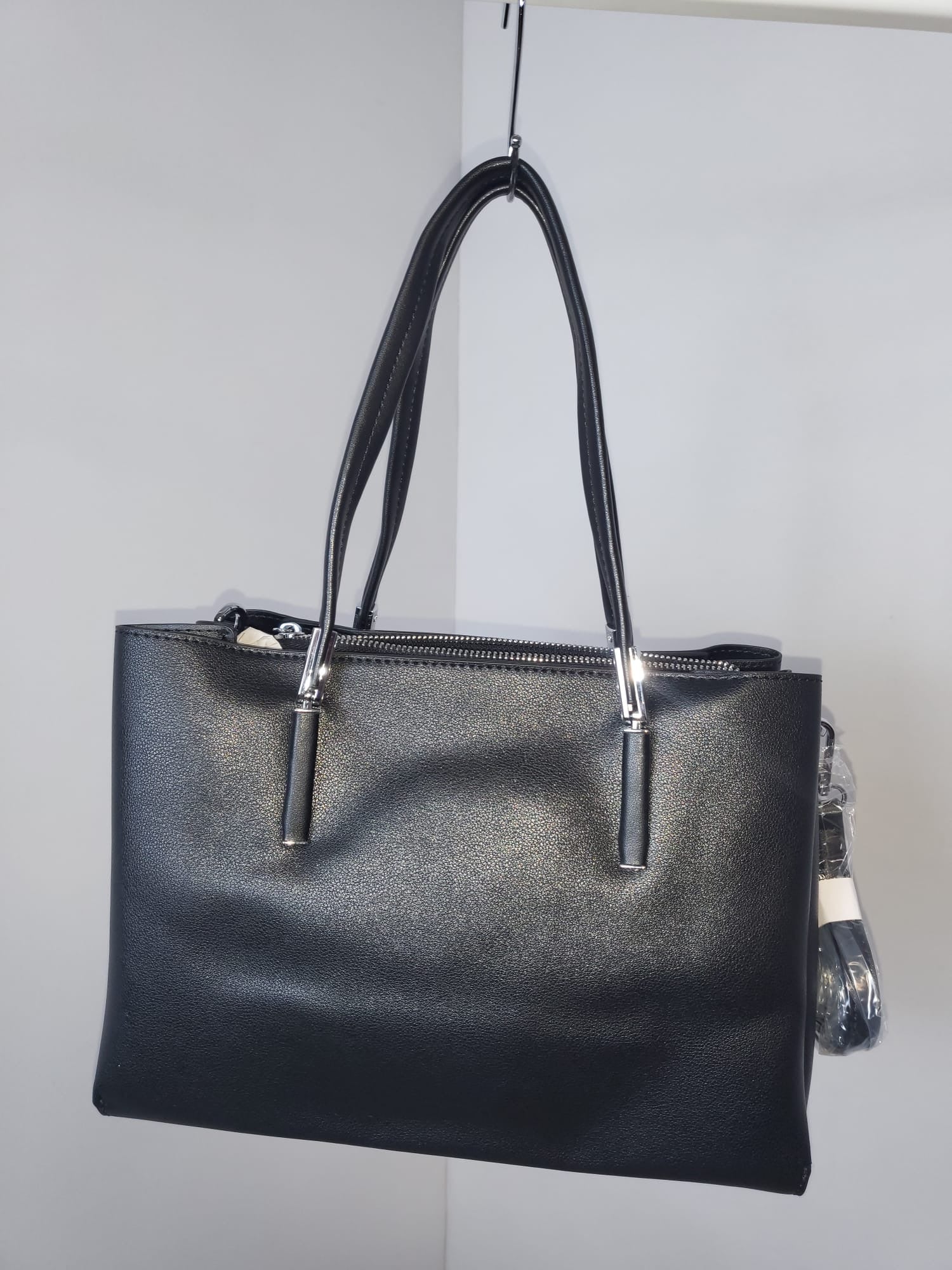 Elegante Kunstledertasche mit Schultergurt und Chromelementen