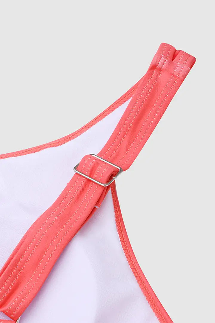 Flamingo Tankini Set Koralle mit Ausschneiden Rüschen Gr S 015