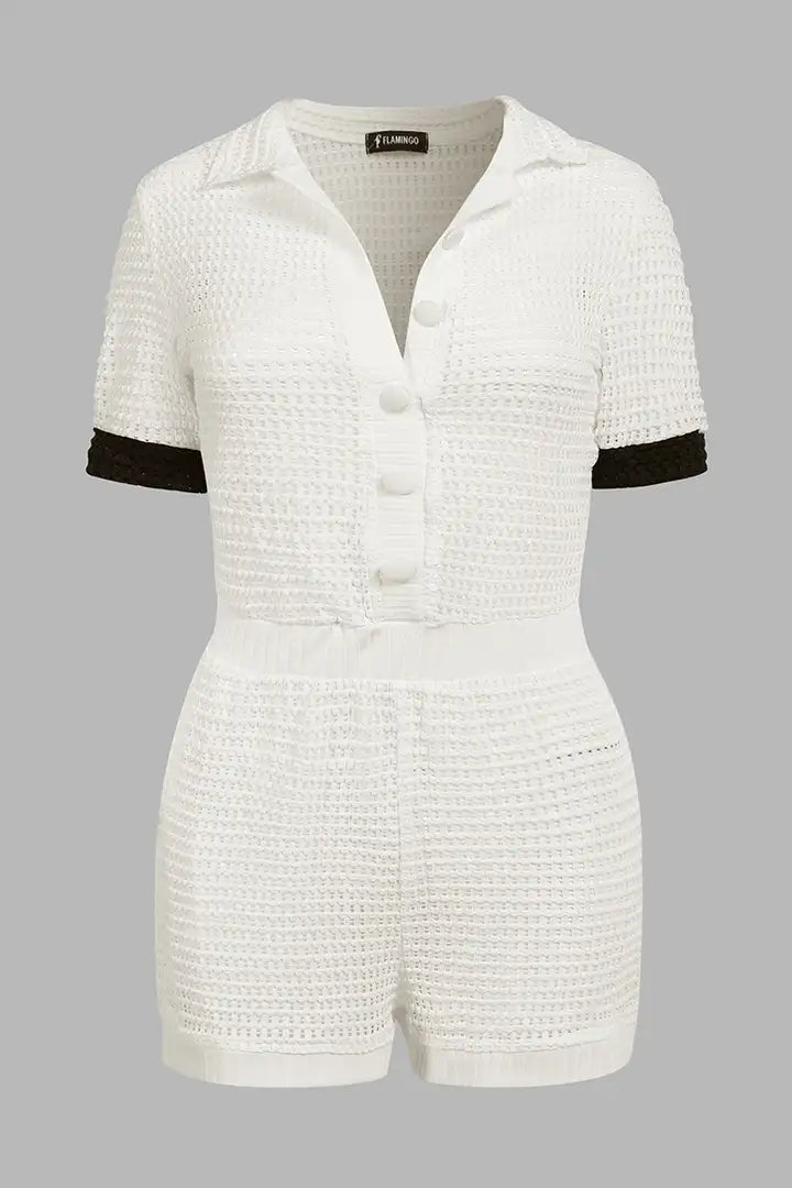Flamingo Weißer Jumpsuit Luftig mit Gummibund an der Taille, Gr 4XL 031